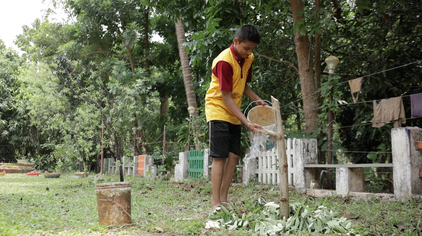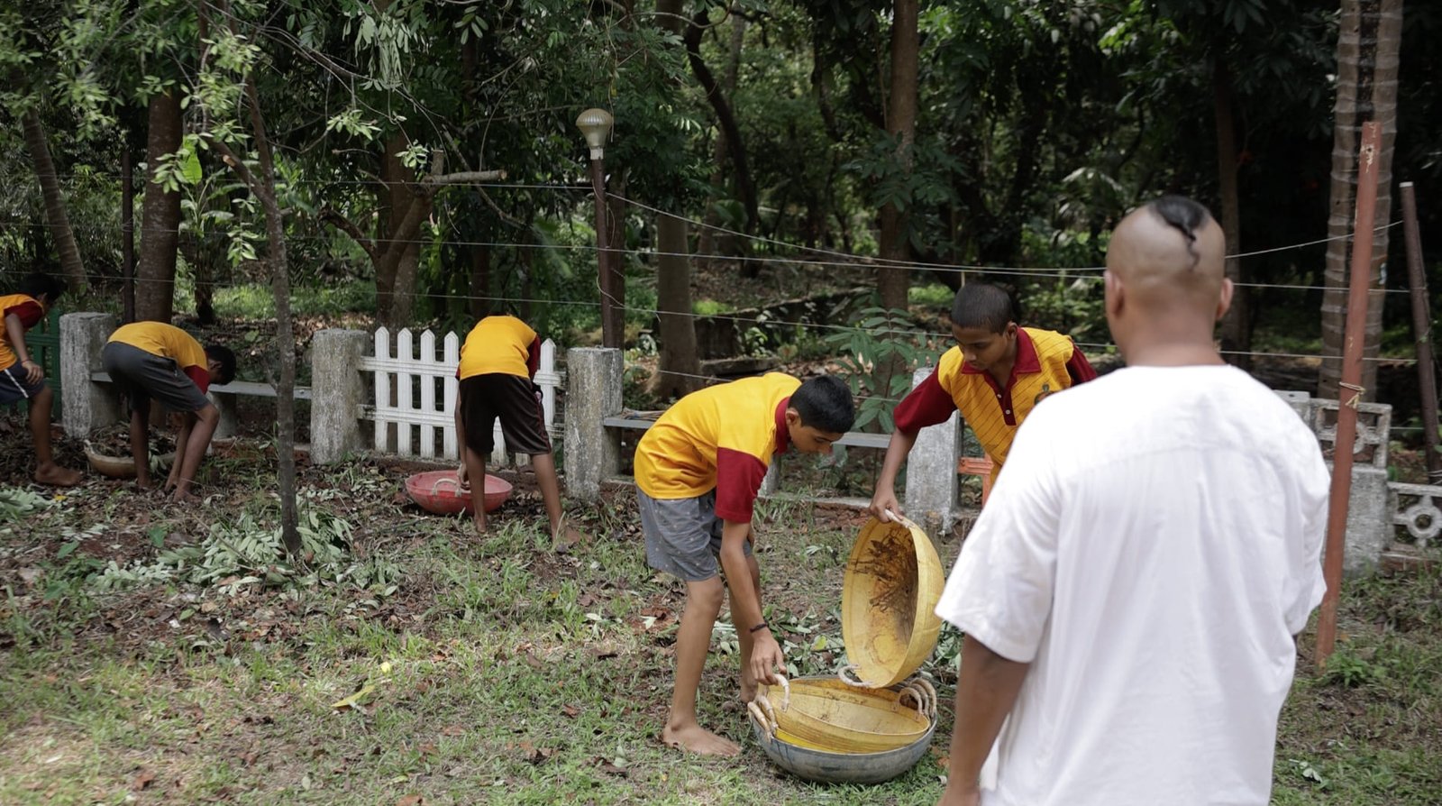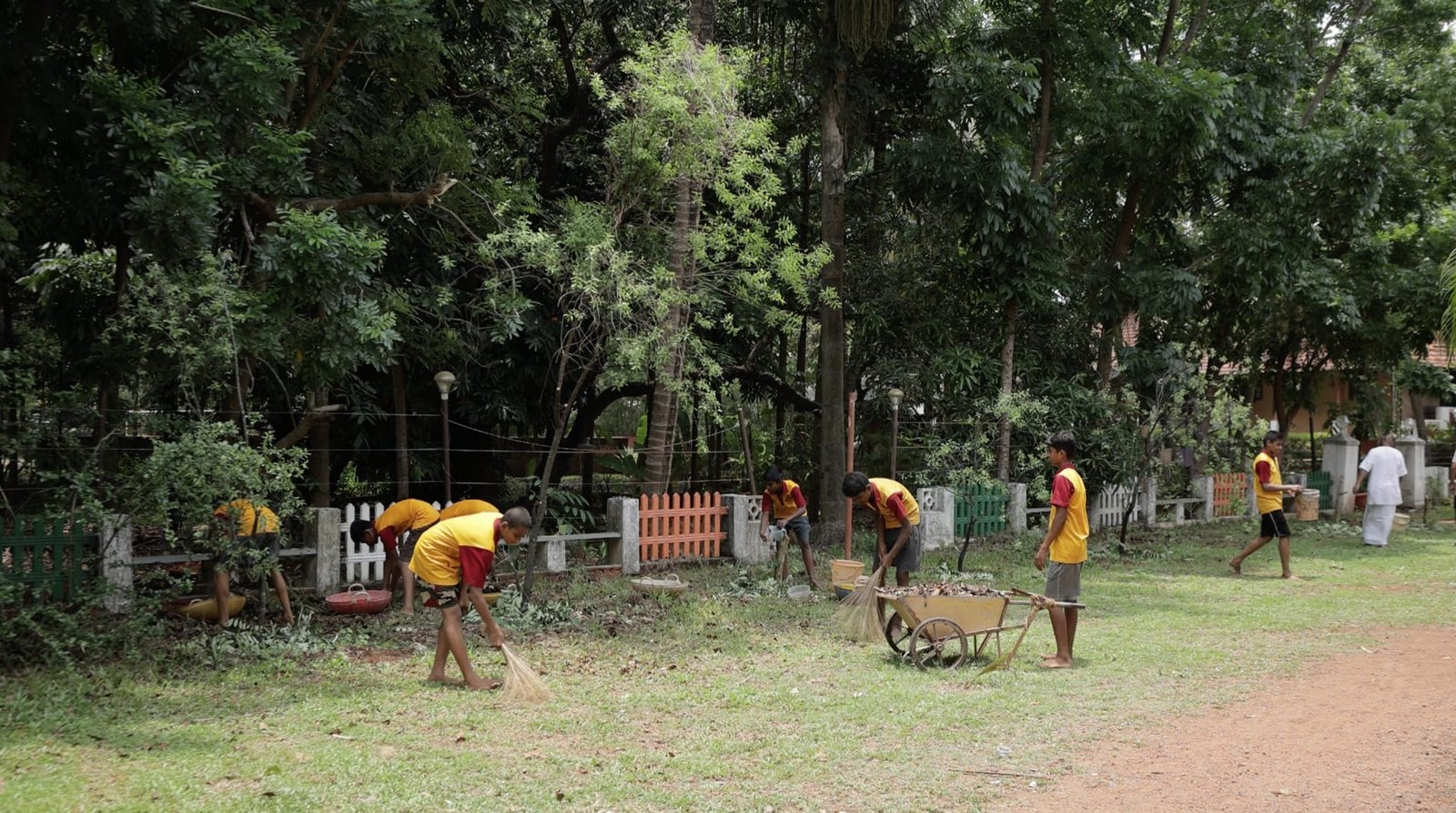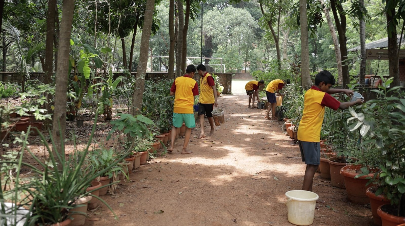 Ramakrishna Mission Balakashrama also provides students uniforms, textbooks, notebooks, school fees etc. In the Balakashrama, the boys are encouraged to cultivate virtuous tendencies, acquire the art of social duty, develop refined tastes, cultivate self-respect, etc. One of the important features is that the boys are allowed to manage the affairs of the Balakashrama, including the upkeep of the premises, gaining thereby the spirit of self-reliance, the dignity of labour, cooperation and personal effort. They participate in the daily routine of the Math such as the morning and evening congregational prayer. They are also taught to chant Vedic Hymns, Bhagavadgita etc.