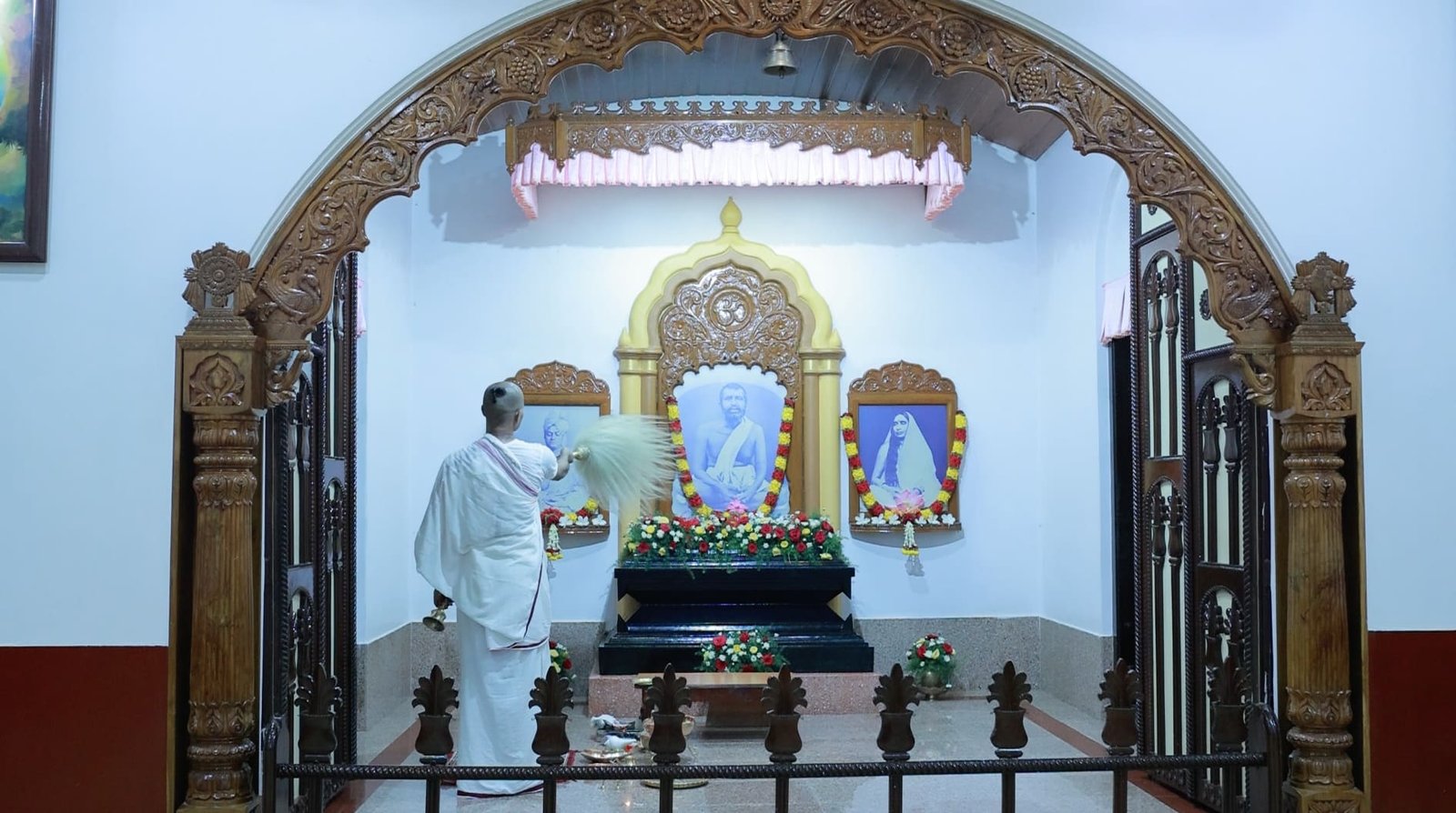 The shrine closes at 12 noon and reopens at 3.30 pm. Sandhyarati starts at 6.30 pm followed by bhajans by the monks, Brahmacharis and students of our Balakashrama till 7.30 p.m. At about 8.15 pm the shrine is closed for the day.