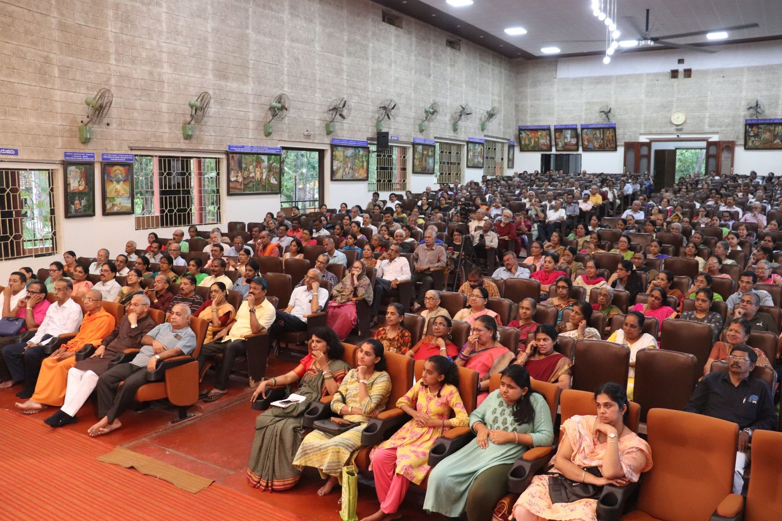 Swami Vivekananda Auditorium with ample seating capacity and facilities for large events on two floors. Dining Hall is located in the basement. Mega events of our ashram will be conducted in this venue. The artworks, by Late Purushottama Karantha, on the life of Sri Ramakrishna & Maa Sharada are being displayed on the walls of the auditorium & Artworks on Cleanliness are displayed on the walls of the dining hall.